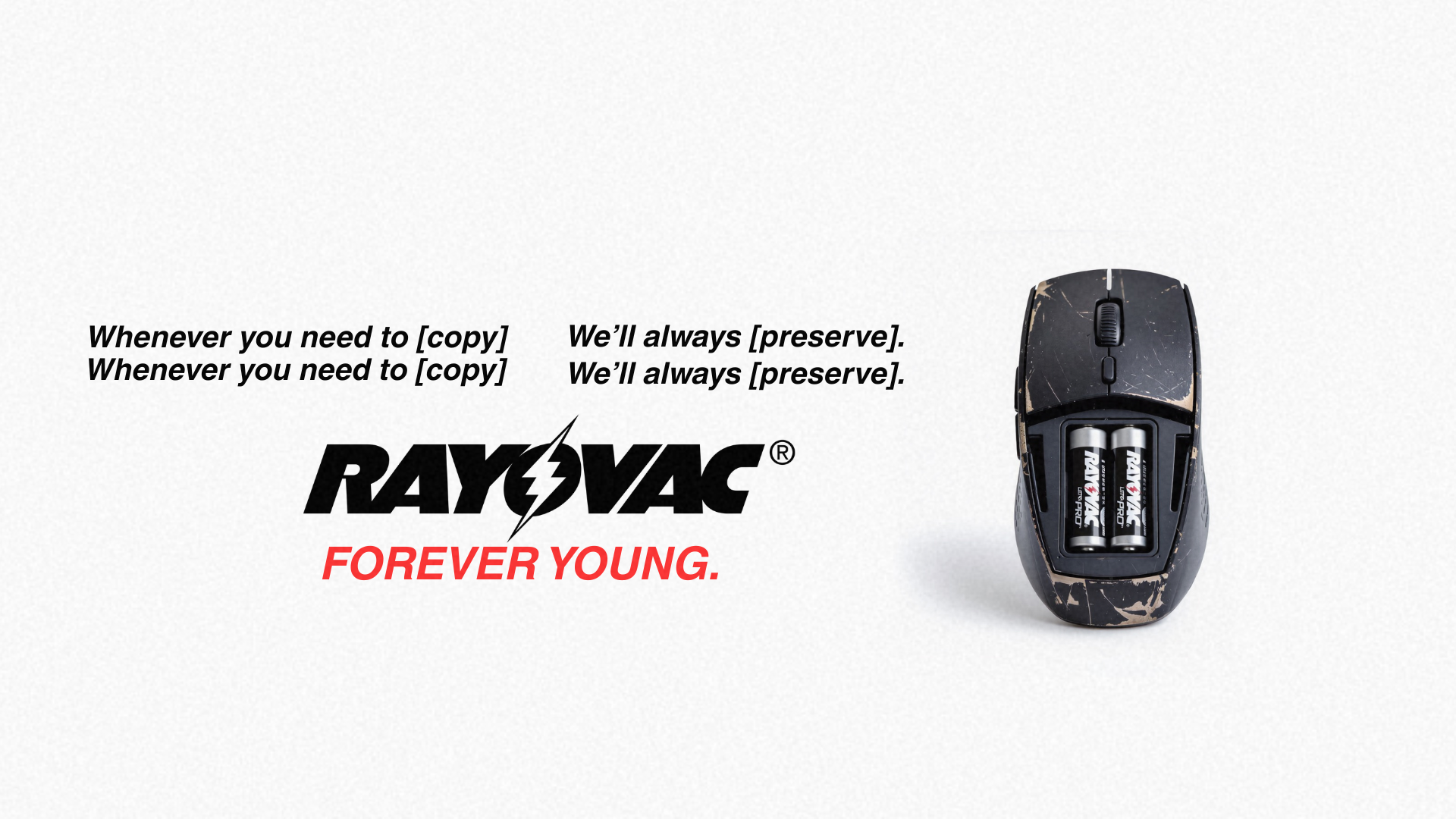 You know those batteries you find in an old remote from 20 years ago? They’re probably Rayovac’s. Embedded in our past, Rayovac has always been there for us in moments we least expect, conjoined with objects we find ourselves cherishing to this day. And it’s this archival steadfastness that deserves its own campaign.